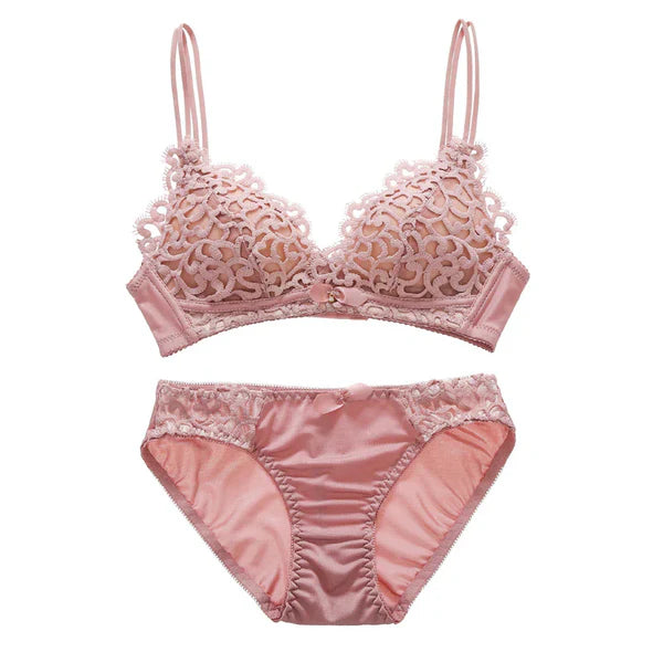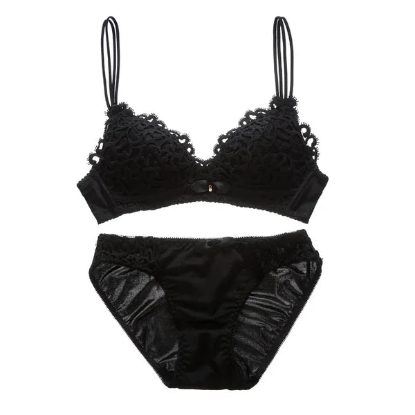 Double Stripped Single Padded Floral Design Bra & Panty Set